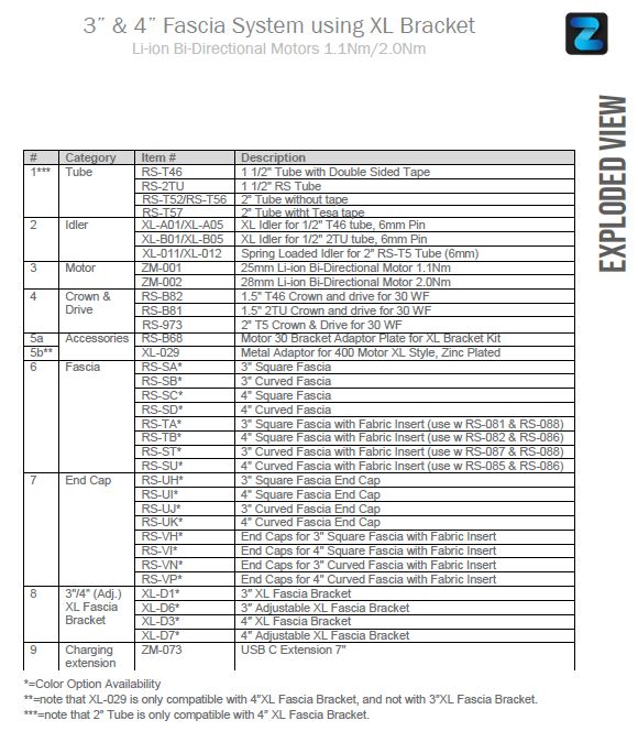 RS-TB1 White, RS-TB2 Bronze, RS-TB3 Alabaster, RS-TB4 Anodized, RS-TB5 Black 16′ x6 pcs/box 101mm Insert Fabric (RS082), 66mm Insert Fabric (RS086)